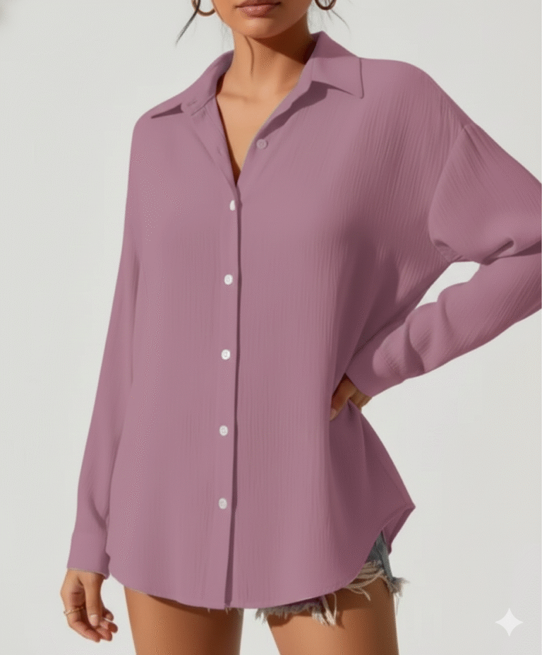 Women’s Solid Purple Relaxed-Fit Button-Down Shirt